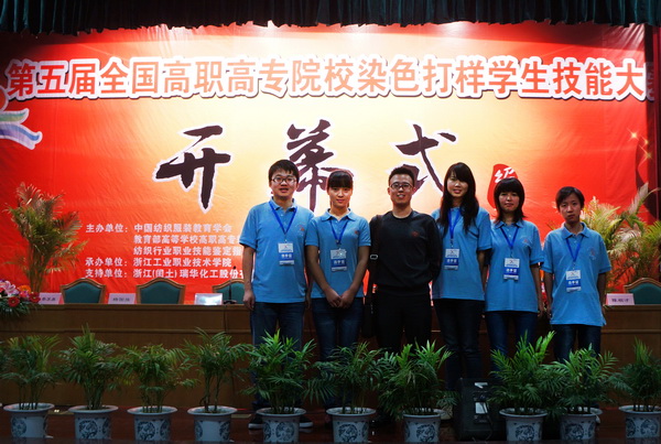 本次大赛共有来自20所高职高专院校的97名参赛选手参加,分理论知识和实际操作考核两项进行角逐。化工与纺织学院染整1001班的5名同学组成我院代表队,由卢寅老师带领参加了比赛。最终,侯佳欣同学荣获二等奖;王瑞花、乔丹、黄铮同学荣获三等奖;熊飞同学荣获优秀奖。