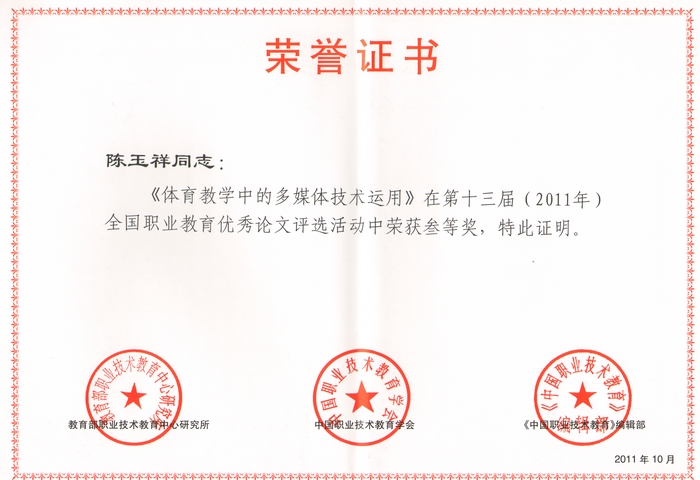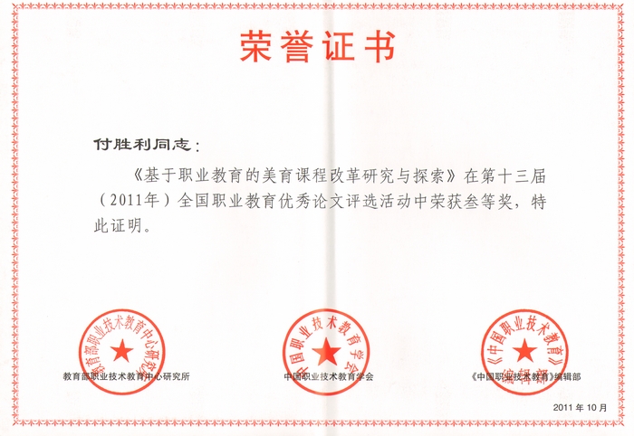 近日,在中国职业技术教育学会、教育部职业技术教育中心研究所和《中国职业技术教育》编辑部组织的第十三届(2011)全国职业教育优秀论文评选活动中,我院共有8篇教育教学类论文获奖,其中邓志辉、杨卫军撰写的《高职院校怎样在培训员工方面推动校企合作》,张普礼、王晓江、梁熠葆撰写的《高职院校校外实习基地建设与管理的探索与实践》获优秀论文二等奖;陈玉祥撰写的《体育教学中的多媒体技术运用》、付胜利撰写的《基于职业教育的美育课程改革研究与实践》获优秀论文三等奖;王晓梅等撰写的其他四篇论文获优秀奖;同时,学院还获得了优秀组织奖。