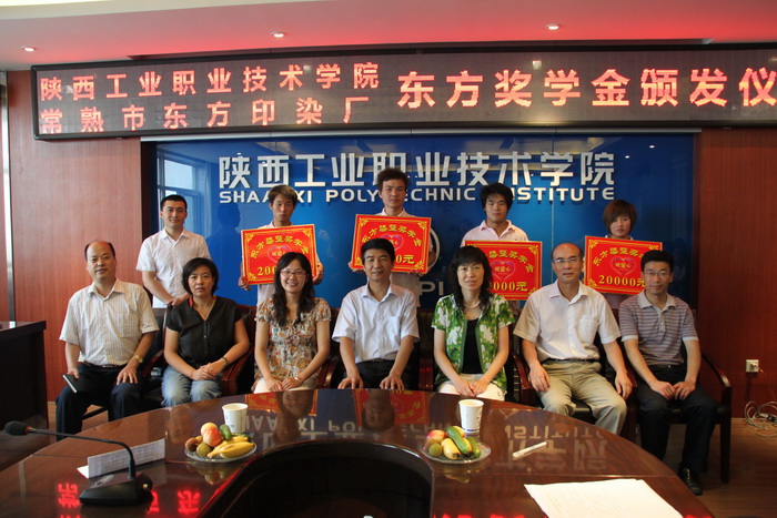 据悉,“东方奖学金”计划从2011年始,连续3年,每年设立10万元奖学金,用于奖励我院染整技术、纺织品检验与贸易、新型纺织机电技术、应用化工技术等专业,愿为东方染整厂发展做贡献的优秀学生。