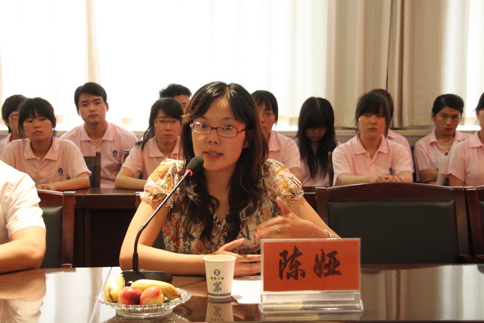 陈亚女士经理介绍了企业基本情况和我院学生在东方染整厂实习、就业等概况,并对我院学生的表现给予充分肯定。