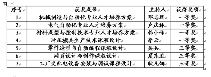近日,2011年度全国机械高等职业教育教学成果奖评选结果揭晓,我院喜获一等奖4项、三等奖3项。12月9至11日,我院副院长王晓江、机械工程学院院长田锋社、电气工程学院院长卢庆林、材料工程学院教学办主任李云赴北京领奖并参加“2011年全国机械高等职业教育教学成果与专业建设创新研讨会”。我院田锋社教授在研讨会上代表高职学院作了题为《系统化人才培养方案设计体系的探索与实践》的经验交流报告。