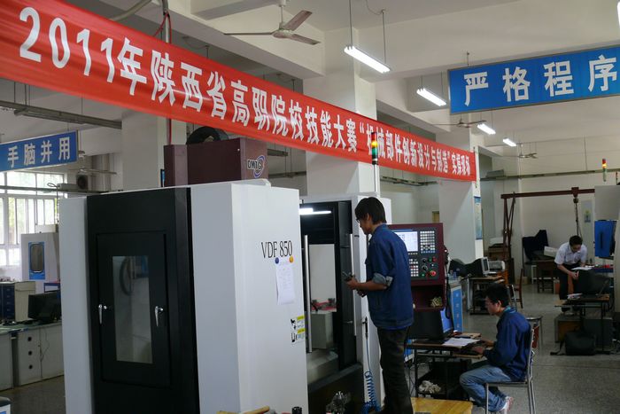 5月15至16日,由我院数控工程学院承办的2011年全国职业院校技能竞赛“机械部件创新设计与制造”竞赛陕西赛区选拔赛在行知楼数控实训基地和崇文楼9楼会议室同时进行。来自省内五个学院的7支参赛队共28名选手,从数控车床、加工中心操作加工、创新设计方案评审和答辩等环节展开激烈角逐。经过两天紧张竞赛,我院数控工程学院参赛二队获得第一名,参赛一队获第二名,参赛三队获第三名。我院数控工程学院二队将代表陕西省参加6月份在天津举行的全国高职院校竞赛。