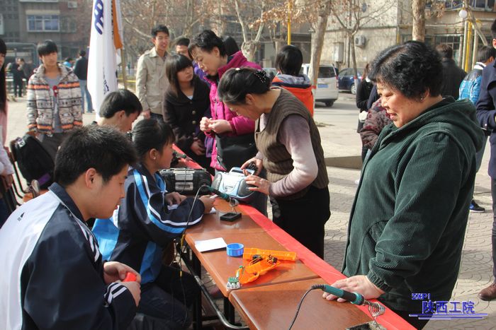 3月3日上午,我院电器维修协会20名志愿者走进学院社区,在平安大道上开展了以“学习雷锋”为主题的为居民义务维修家电活动。