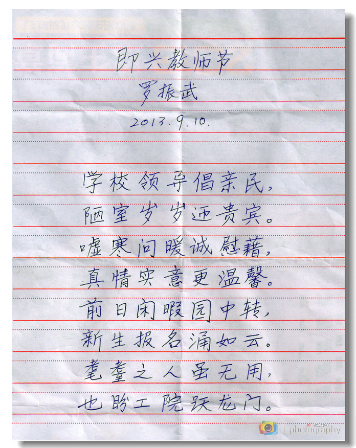 全院教职工: 九月天高,丹枫迎秋,瑞菊溢彩,兰蕙争妍。