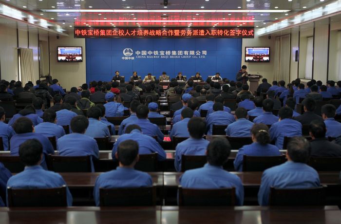 1月4日,我院党委副书记王天喆、就业指导处处长孙小云等应邀出席了中铁宝桥集团企校人才培养战略合作暨员工入职签字仪式,并代表学院与中铁宝桥集团正式签订《企校人才培养战略合作协议书》。